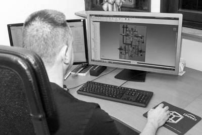 Våra konstruktörer utför avancerade maskinkonstruktioner. De arbetar med konstruktioner i 2D/3D, beräkningar och simuleringar.
